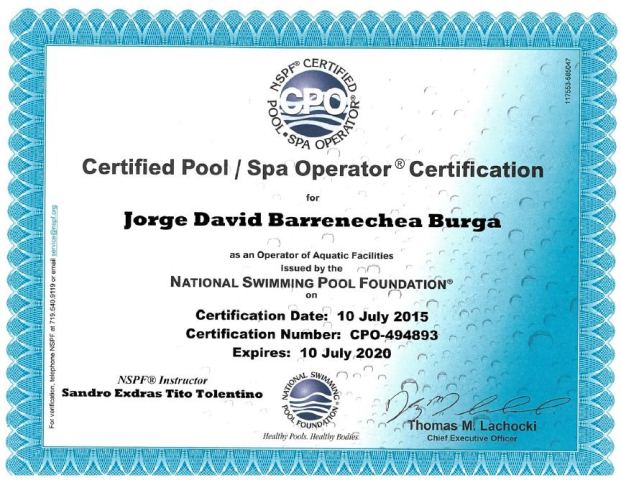 Estamos certificados por National Swimming Pool Foundation (NSPF).